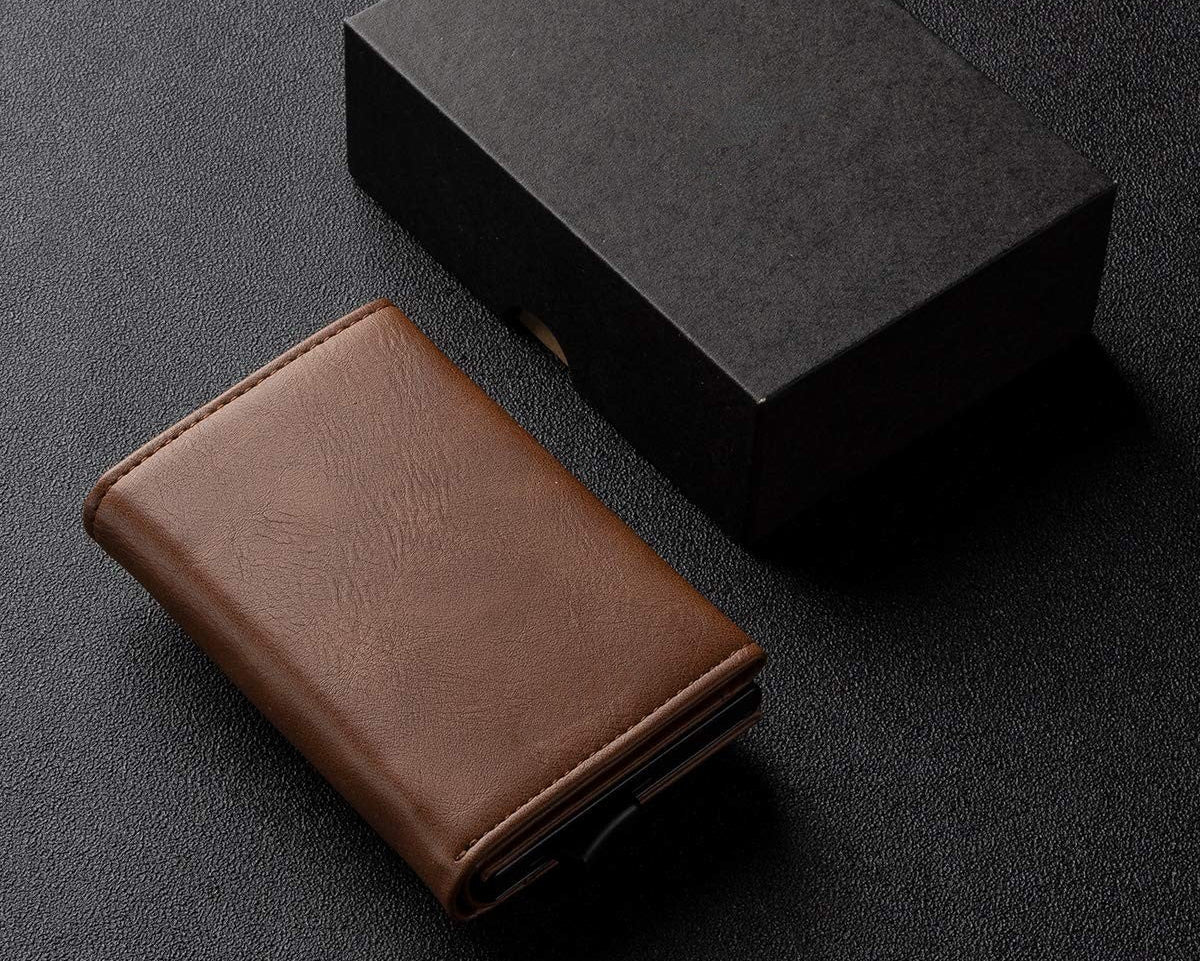 Diseño compacto, acceso Pop-Up y protección RFID/NFC para llevar lo esencial con orden y tranquilidad.